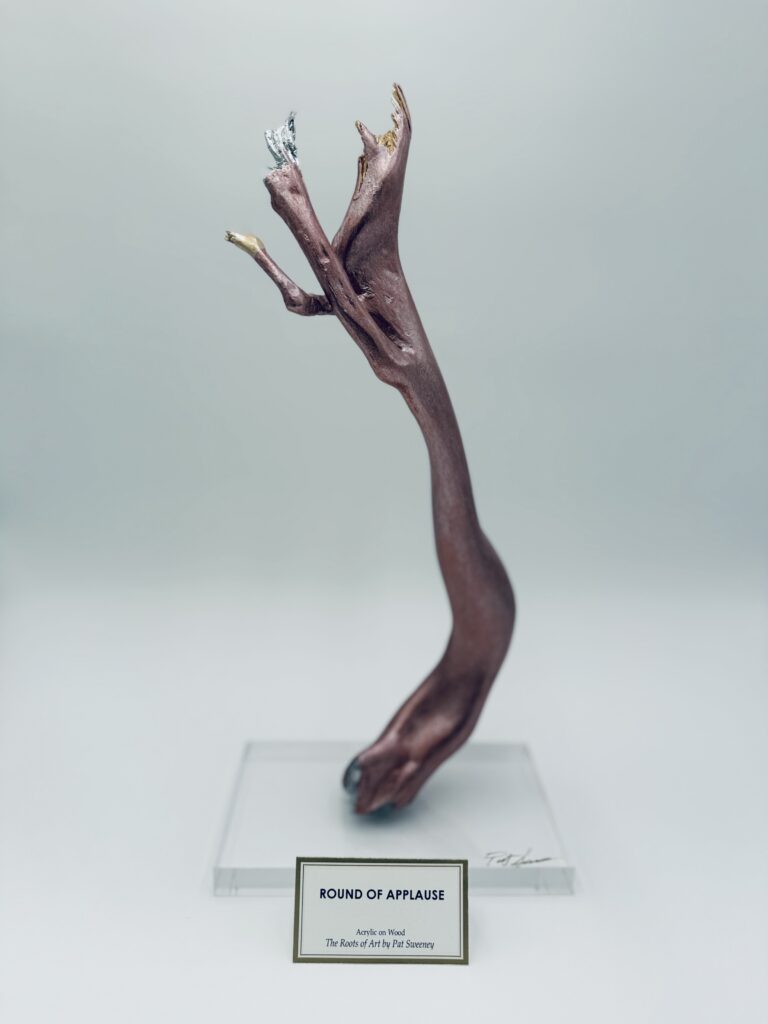 “Each piece goes through a long and detailed process. It begins with me searching for the perfect piece of wood, which can take anywhere from hours to months. Once I bring the roots back to my shop, I carefully study each piece to understand its natural shape, character and energy. Then, I start working—cutting, trimming, sanding, and drying the wood. After that, I add the finishing touches to bring out a one-of-a-kind design. Finally, I prime, sand, and hand-paint (brush only) each piece using acrylic paints that I’ve personally altered, making every artwork truly unique.”